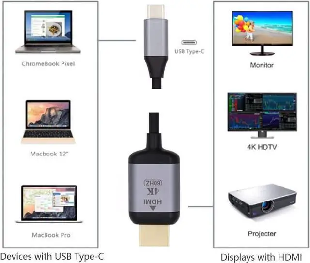 • Reversible Compatible with HDMI 4K video source to Type-C USB-C sink output. (need USB power)