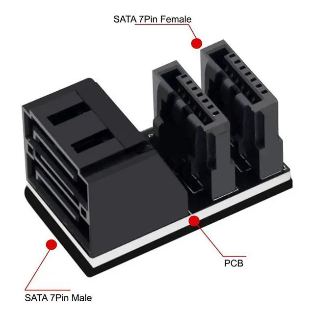 • Dual SATA 7Pin Female to 7Pin Male Vertical 90 Degree Angled Adapter Low Profile for Desktops SSD HDD Mainboard Motherboard