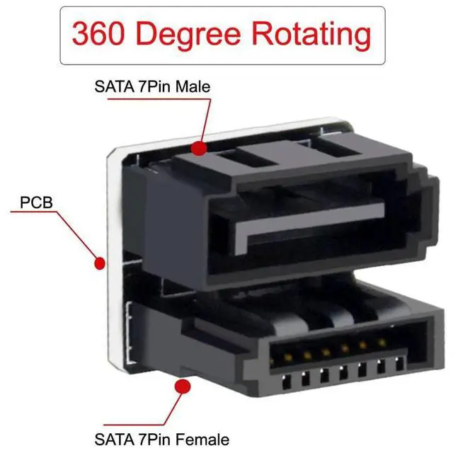Single SATA 7Pin Female to 7Pin Male 360 Degree Angled Adapter for Desktops SSD HDD Mainboard Motherboard