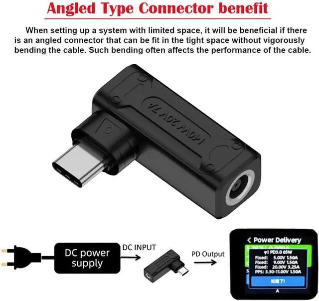 140W 100W DC Jack 6.0x1.4mm Input to USB-C Type-C Angled 90 Degree Power Plug Charge Adapter for Laptop Phone