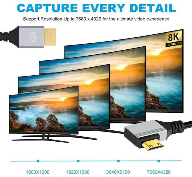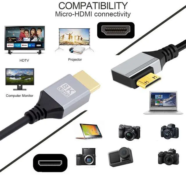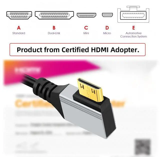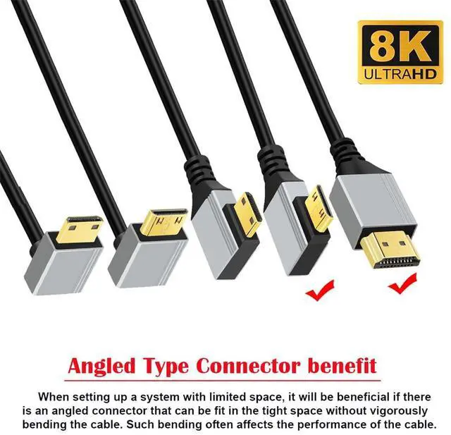 Angled Connector Design: 90 Degree Angled HDMI, The angled type Allowing you to connect it to a female port, even if space around the port is limited.