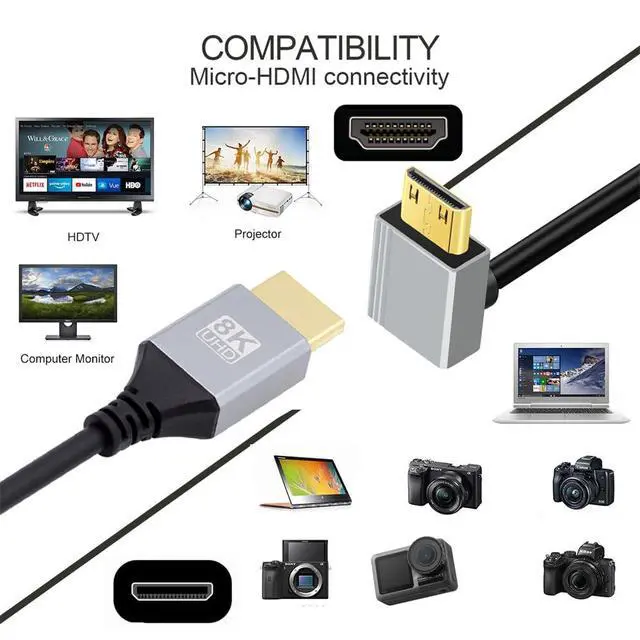 Angled Connector Design: 90 Degree Angled HDMI, The angled type Allowing you to connect it to a female port, even if space around the port is limited.