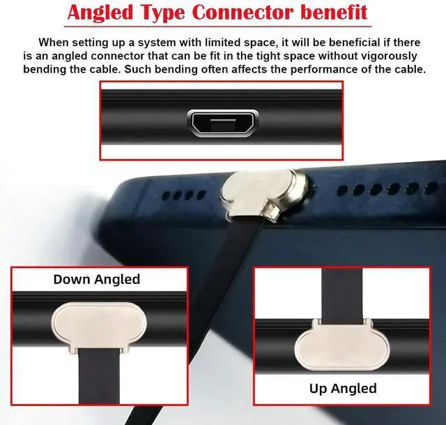 Length 16cm included connector,Material:Ultra Slim TPE+Overmold PVC.This Angled type Cable Allowing you to connect the cable to a female port, even if space around the port is limited.