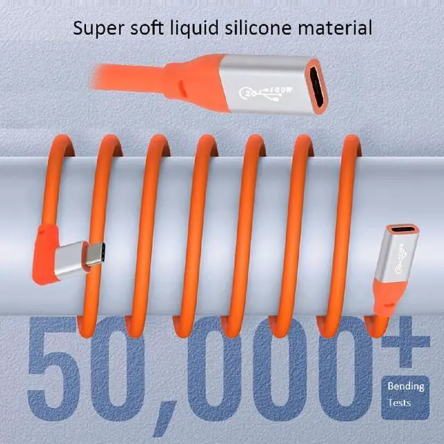 USB3.2 Male to Female Extension Cable 20Gbps 90 Degree Left Right Angled Ultra Soft High Flex with 100W and 8K 5K USB4.0 Type-C Compatible with Thunderbolt3/4 (30cm)