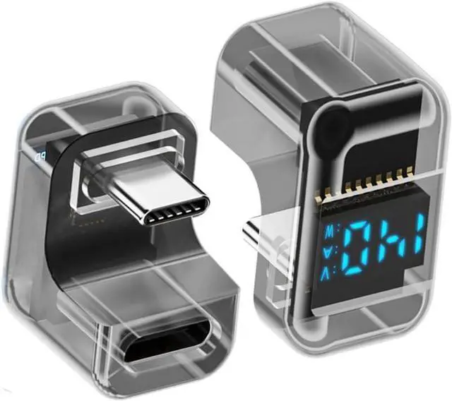 Adapter Transparent Type-C Smart LED Display USB-C Male to Female Extension Adapter USB4.0 40Gbps 140W Opposite U Shape Back Angled Current Voltage Monitoring