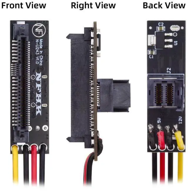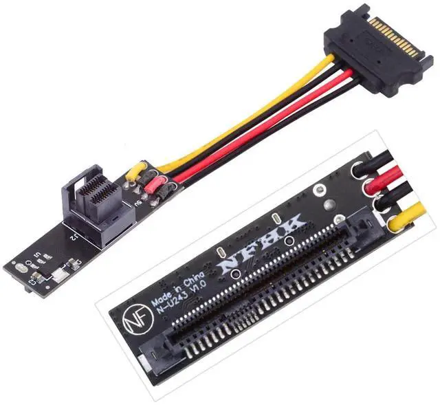 • Connectors: 1 x OCuLink SFF-8612 female and 1 x SFF-8639 U.2/U.3 female and 1 x SATA power.