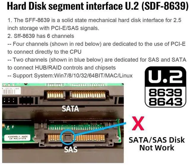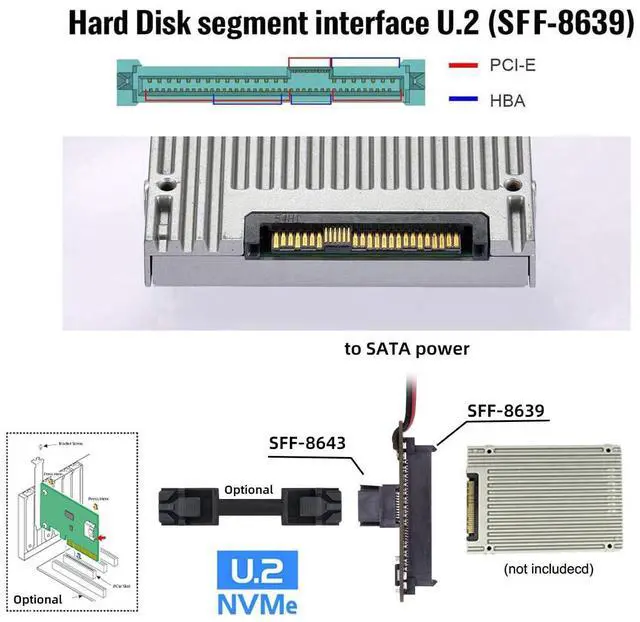 • This convertor expands the SFF-8639 U.2/U.3 by one SFF-8612 oculink interface. It can be connected e.g. one SSD by using an optional cable.