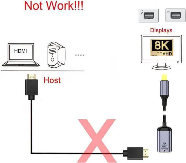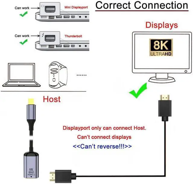 • This is a 8K DisplayPort to HDMI cable, Dont support HDMI to DP. It is not Bi-directional.