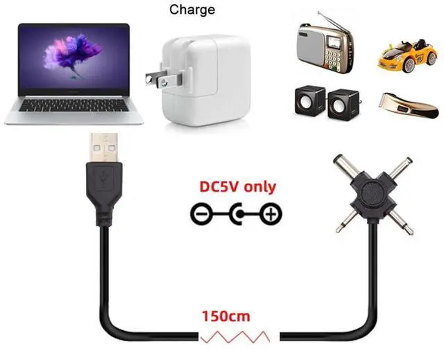 • USB 2.0 to 4-in-1 DC 5V 5.5x2.5mm 5.5x2.1mm 4.0x1.7mm 3.5x1.3mm