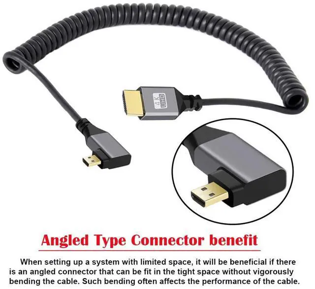 The angled type Allowing you to connect it to a female port, even if space around the port is limited.