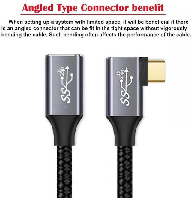 • 90 Degree Angled USB-C USB 3.1 Type C Male to Female Extension Data Cable for Macbook Tablet