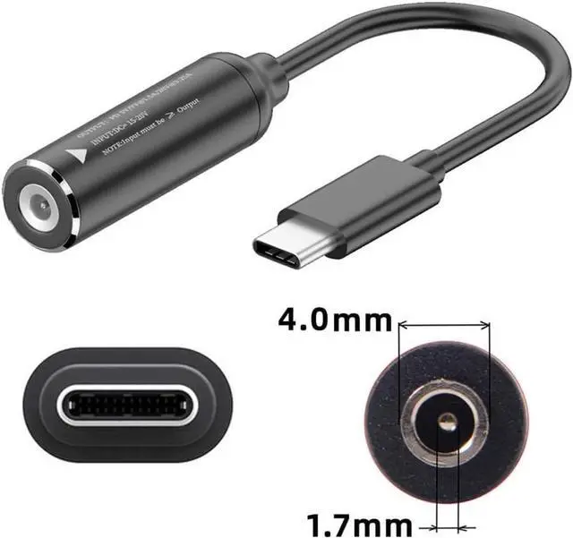 DC Jack 4.0x1.7mm Input to USB-C Type-C Power Plug Charge Cable for Laptop Phone PD9V 15V 20V