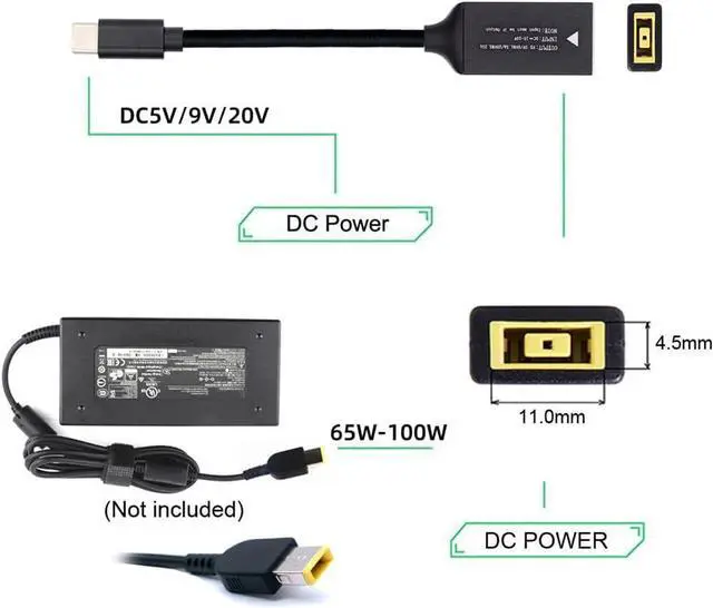 Rectangle Jack Thinkpad X1 Input to USB-C Type-C Power Plug Charge Cable for Laptop Phone PD9V 15V 20V