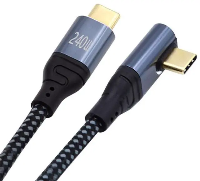 USB-C 240W Type-C Cable 480Mbps 48V 5A Low Profile Angled 90 Degree Compatible with USB2.0 100W Charging for Laptop Tablet Phone 50cm