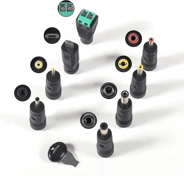 8 Connector Spec:5.5*2.5mm; 5.5*2.1mm; 4.0*1.7mm; 3.5*1.35mm; 3.0*1.1mm; 2.5*0.7mm; Micro USB LED terminal. you are able to choose different adapter tips and use them for various household electronics