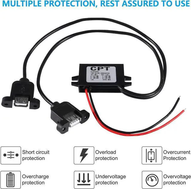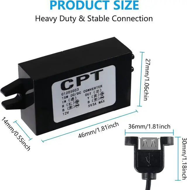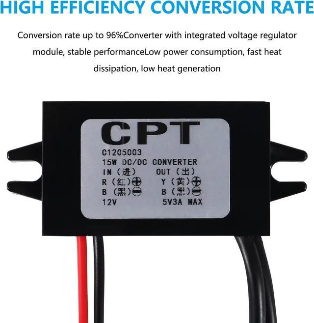 Wide application: DC converter module 12V to 5V is widely applied for GPS navigation, driving recorder, electronic dog, car radio, MP3, MP4, walkie talkie, surveillance system, bus display, taxi advertising screen, LCD TV, LED, etc.