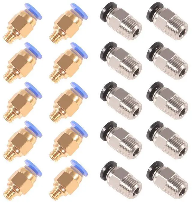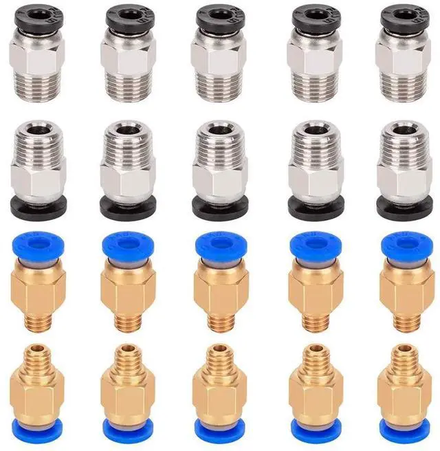 PC4-M6 Pneumatic Fitting Push to Connect + PC4-M10 Straight Quick in Fitting for 3D Printer Bowden Extruder 20pcs