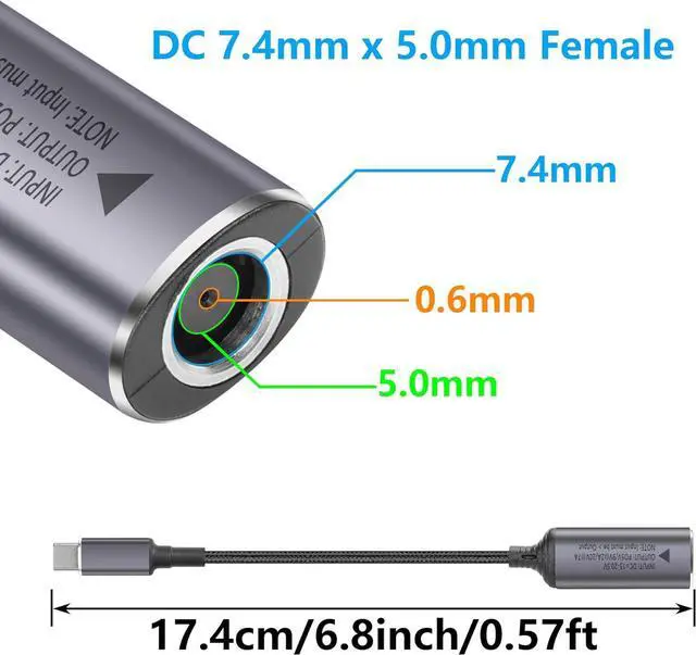 PD 140W DC7450 to USB C Cable DC 7.4mm x 5.0mm Female(7.4 x 0.6mm) Input to Type C Male Power Charging Cable with PD Automatic Identification Chip,for Phones,Tablets,Laptops(DC7450)