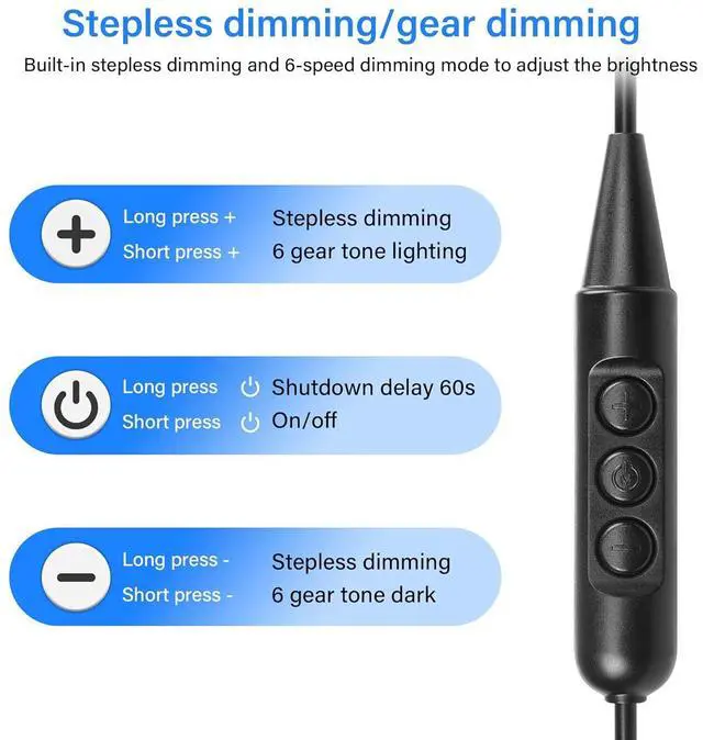 ADJUSTABLE DIMMING RANGE Adjust your dimming range for LED lamp with USB 6-speed dimmer switch cable; set your most comfortable brightness range; prevent the lamp from flickering at low voltage effectively; save energy and extend bulb life; protect your eyes from overly bright lights.