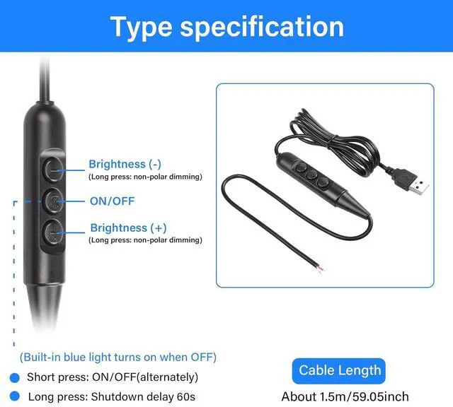 USB 6-SPEED DIMMER SWITCH CABLEThis inline switch comes with a USB A socket on one end and stripped ends on the other ready. Ends are stripped and tinned for easy wiring. It is allowing users to rig and terminate as needed.