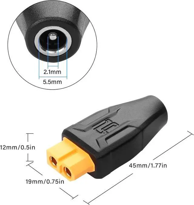 • 2pcs XT60 to DC 5.5mm X 2.1mm adapter,no cable design can save more space,small size,light weight,easy to carry
