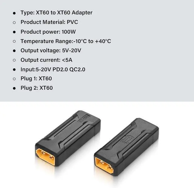 2pcs XT60 adapter,no cable design can save more space,small size,light weight,easy to carry.