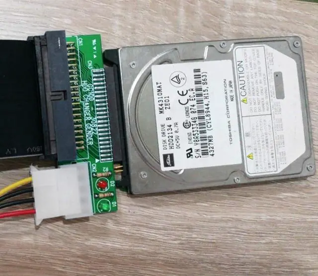 Correct connection: The front of the notebook hard drive (the side with the sticker) is aligned with the front of the card (the side with the indicator light).