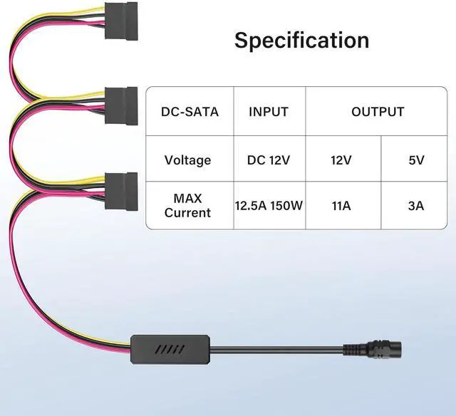 Step-down Voltage RegulatorDC5525 Female to SATA Female Power Supply Cable design with a step-down voltage regulator conversion board, convert 12V to 5V. Moreover, there are heat dissipation holes on the casing, which can make the cable performance more stable