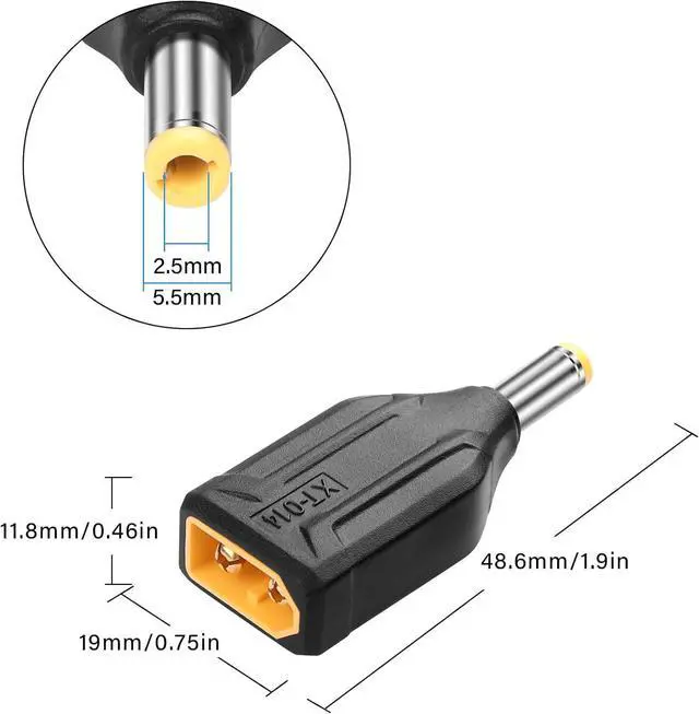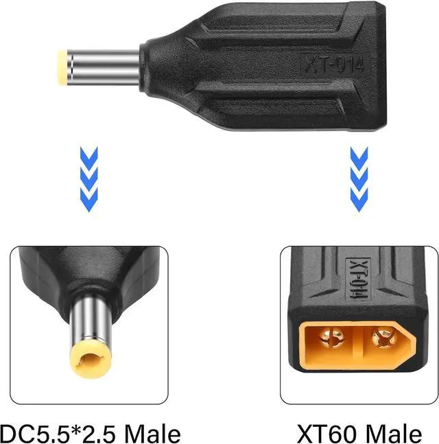 • 2pcs XT60 to DC 5.5mm X 2.5mm adapter,no cable design can save more space,small size,light weight,easy to carry