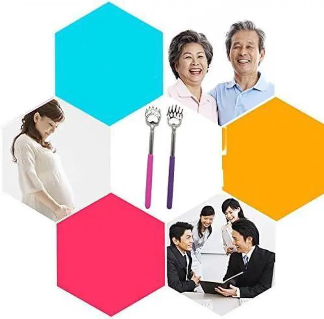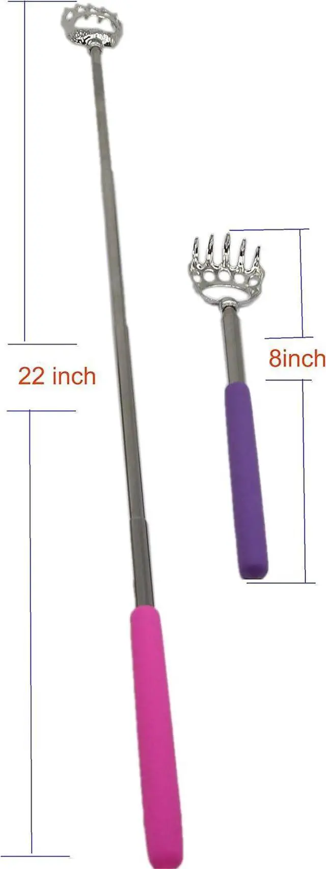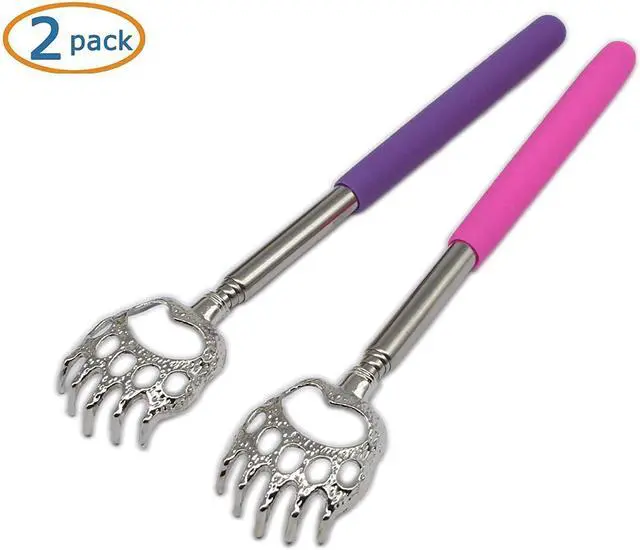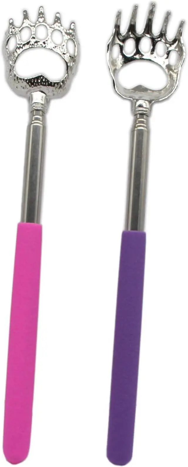 (2- Pack Extendable Telescopic Scratcher Handle, Bear Claws Metal Back Scratchers/Hand Massager/backslap with Rubber Handles(Purple and Pink