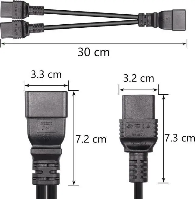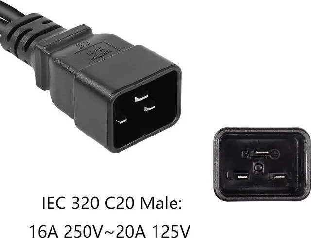 C20 Male to 2 x C13 Y Splitter Adapter Extension Power Cable Cord (13 INCH) to power 2 devices at the same time, such as powering your laptop and an extra monitor through a single plug.