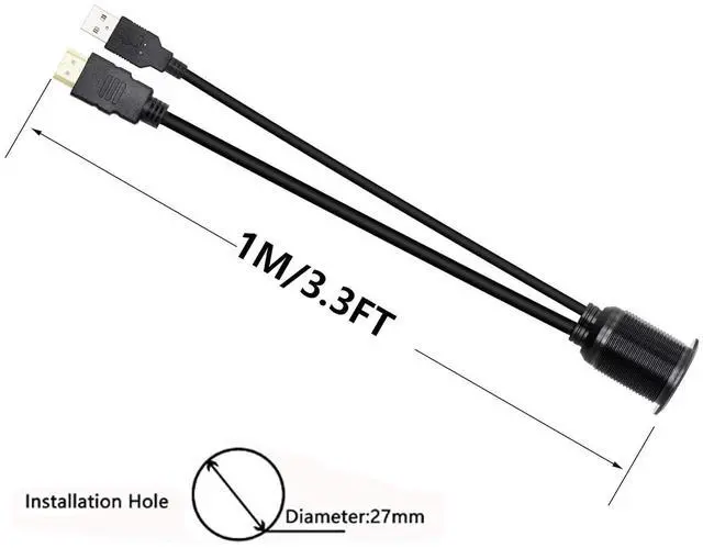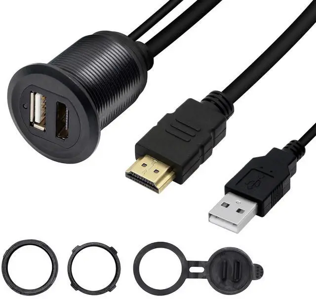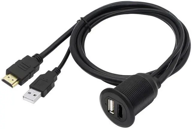 USB 2.0 & HDMI Male to HDMI Female extension flush panel mount waterproof cable. design for car,boat and motorcycle, Designed for cut a hole on your car boat motor dashboard, transfer the data in your car boat motorcycle.