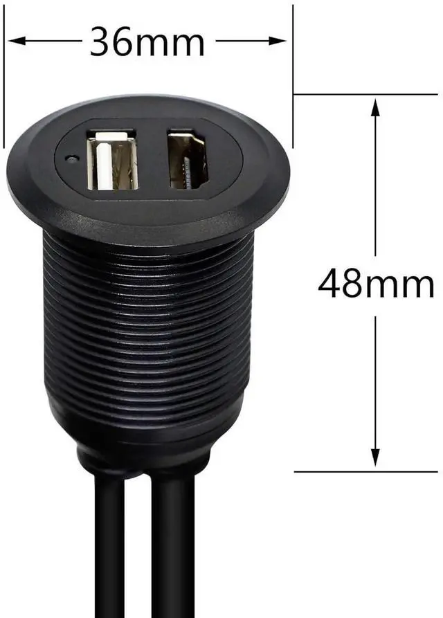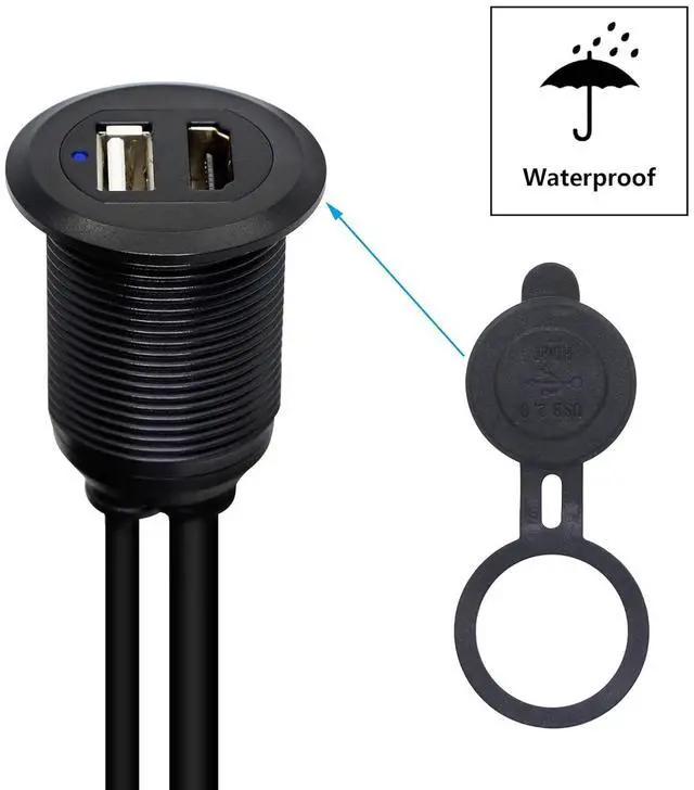 Dashboard Panel Mount USB + HDMI Cable With waterproof Plastic cap can fit tightly to prevent damage from extreme weather conditions; Able to work in a damp environment as long as the electrical connectors kept dry; Cap cover is detachable.