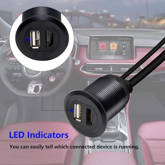 USB Port offers high data transmission and charging efficiency, and connects with HDMI compatible devices for in-car entertaining system; Compatible with any stereo system that comes with USB/HDMI input; Perfect for stereo installation on cars and trucks, etc.