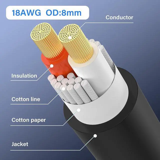 18AWG10FT speakon to 1/4" audio extension cable using 18AWG oxygen-free copper wire, high-quality PVC cable, cable OD: 8.0mm. current up to 30A. Cable body is strong and soft, high-fidelity lossless transmission, hifi level sound quality, delicate and smooth, sound quality thick and full.