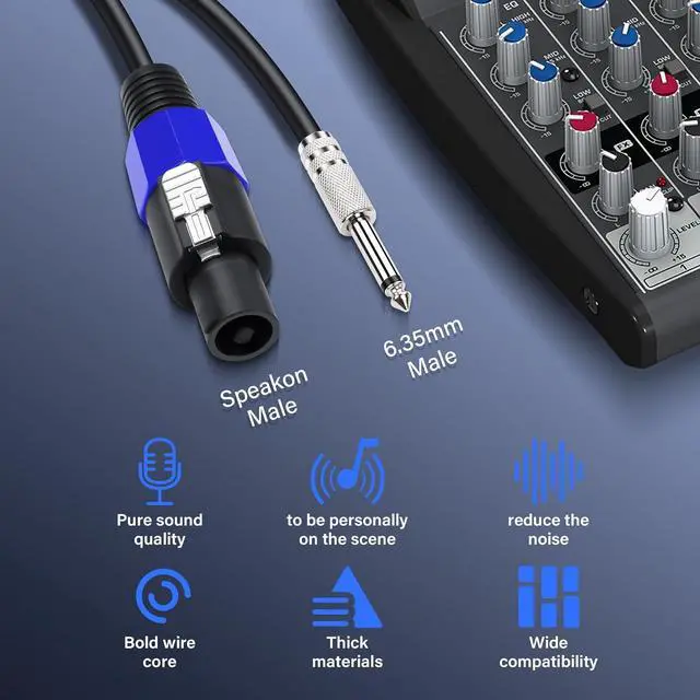 High-fidelity SoundSpeakon to 1/4" audio cable provide reliable interference-free audio transmission, superior cable performance. High fidelity sound quality without noise, static, or hum. An ideal speakon to TS 6.35mm cable helps your instrument's sound to flow in a clear, live and natural way.