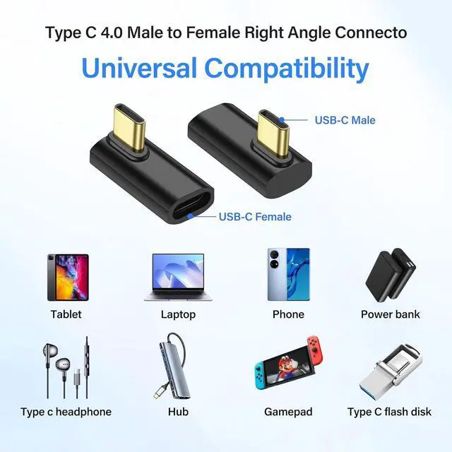 90°Right Angle AdapterPlug and play, small and portable, durable and will not interfere with plugs and operations. Ideal for use in small spaces or near walls. Effectively prevent wear and tear of the cables and input ports of devices. Can also be used as Type-C interface extension
