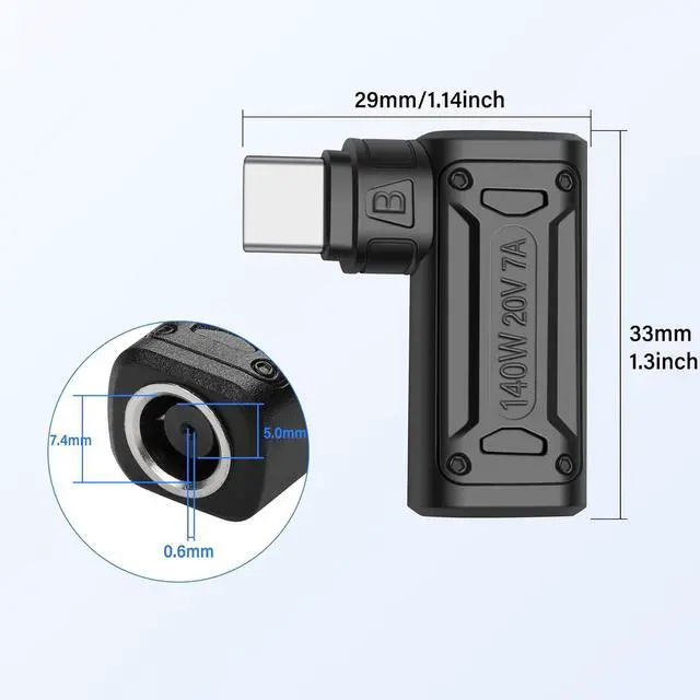 PD USB C AdapterIt can convert convert the DC 7.4mm x 5.0mm plug of the PD power supply to a USB Type C plug, perfect solution to the problem that the dc power adapter cannot power the devices with type c jack. Note: DC input power must be higher than USB C output power.