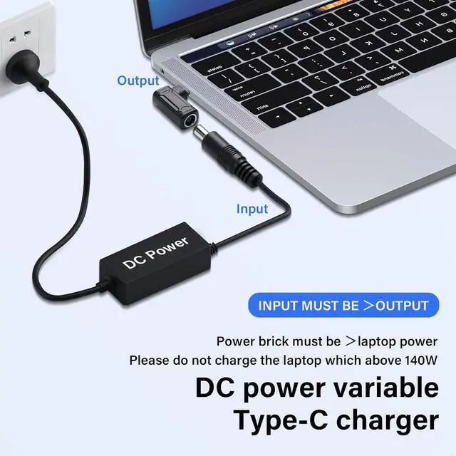 NotePlease do not charge the laptop which above 140W, and your power brick must be greater than the laptop power, otherwise it will not work. For example, your DC power brick is 90W, but your laptop is 90W or 100W or above, it will not work.