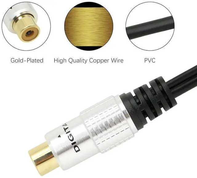 Material:Made of Premium PURE Aluminium Alloy 24K gold-plated connectors High Purity Oxygen Free Copper and double shielding ensure less lose of singal transporation.