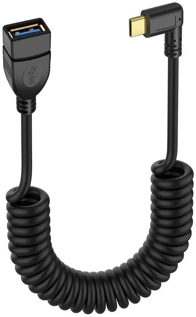 USB Type C Coiled Cable 5Gbps Retractable 90 Degree USB3.0 Female to USB C Male Charging Cable and Data Transfer for Phone, Tablet, Other USB C Devices (F/R)