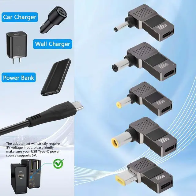Compatibility: Supports HP 5.5x2.1mm jack adapter, PD adapter, supports up to 100W charging, requires PD charger+PD cable