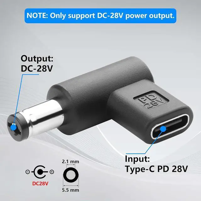 Input: Type-C Female Output:DC male, DC 5V 5.5mm x 2.1mm