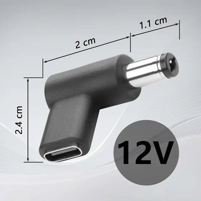 Connector: DC power connector adapter; USB C female to 5.5mm x 2.5mm male plug converter (aperture: 5.5mm, pin diameter: 2.1mm)