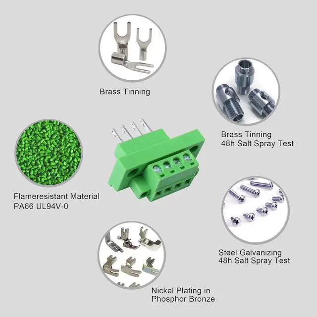 Function4-Pole terminal pitch: 5.08mm. Through-wall plug-in screw terminal. One set: through-wall pin holder + connector socket. 2 sets/package. Suitable for electrical connection, bid farewell to traditional wiring, bid farewell to dangerous, safe wiring