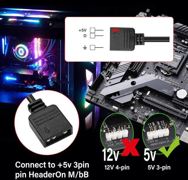 The arrow LOGO corresponds to RGB pin 5V. Equipped with a 3-pin male pin socket, plug and play, no welding, easy to use