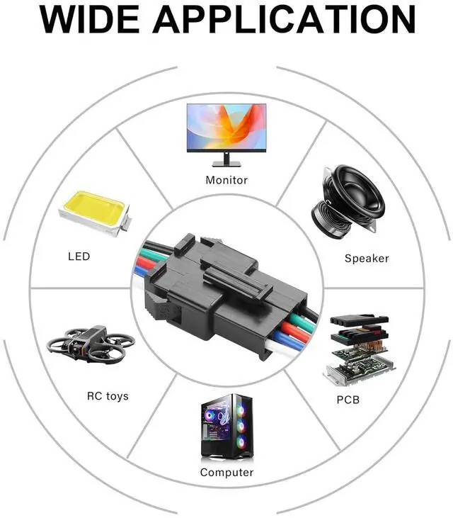 This cable is widely compatible with appliances, computers, automobiles, lighting, LED light strips, RC toys, batteries, PCB control panels, speakers, and more.