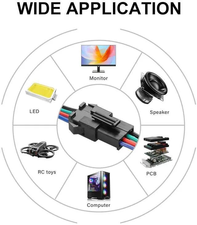 This cable is widely compatible with appliances, computers, automobiles, lighting, LED light strips, RC toys, batteries, PCB control panels, speakers, and more.
