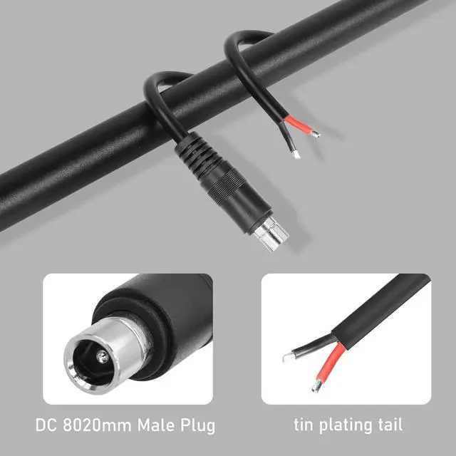 The DC8020 power cord uses a black insulation layer to protect the internal copper core. Safe and corrosion resistant,its end is pre-stripped and tin plated for easy welding,installation and connection.