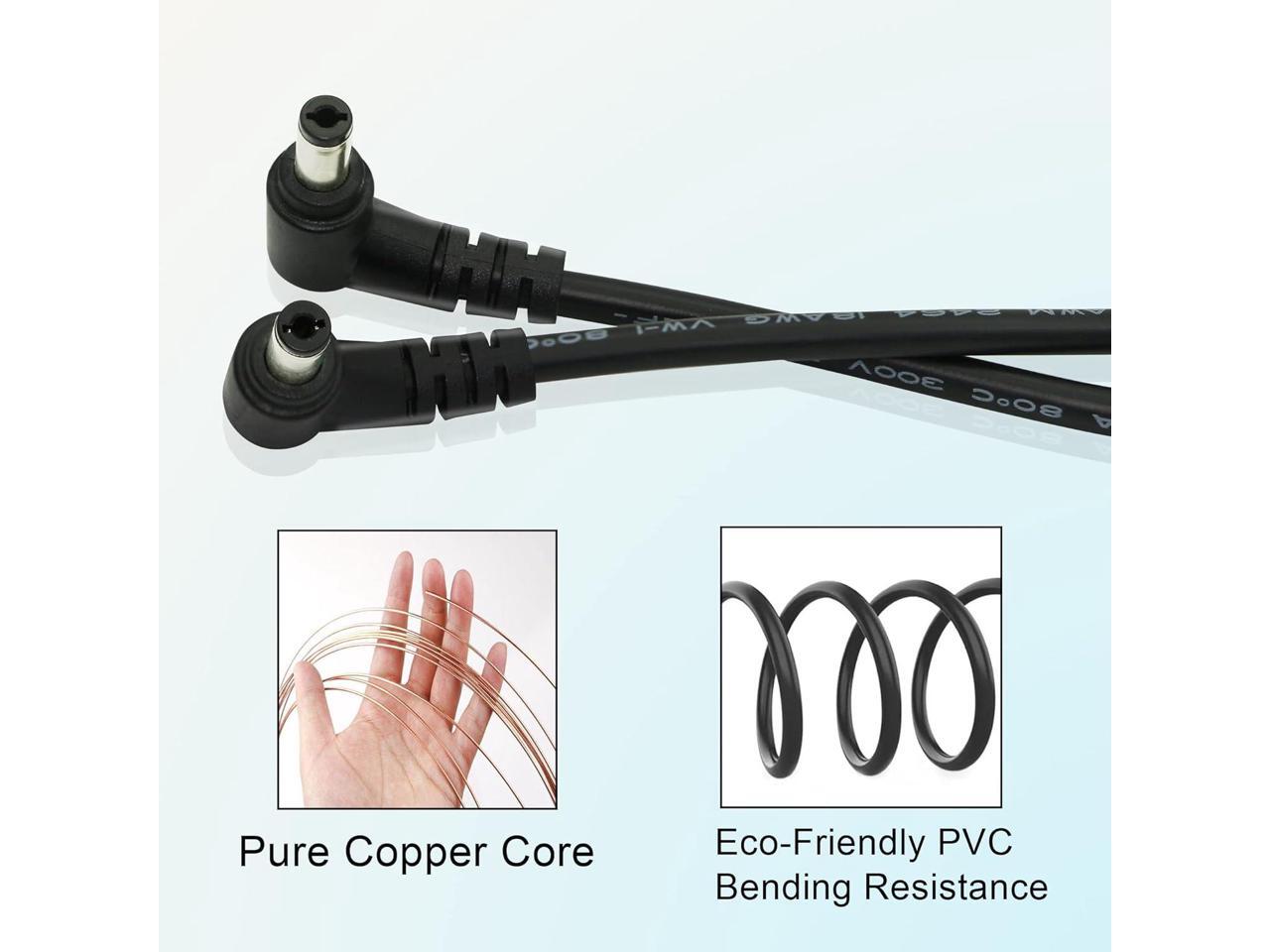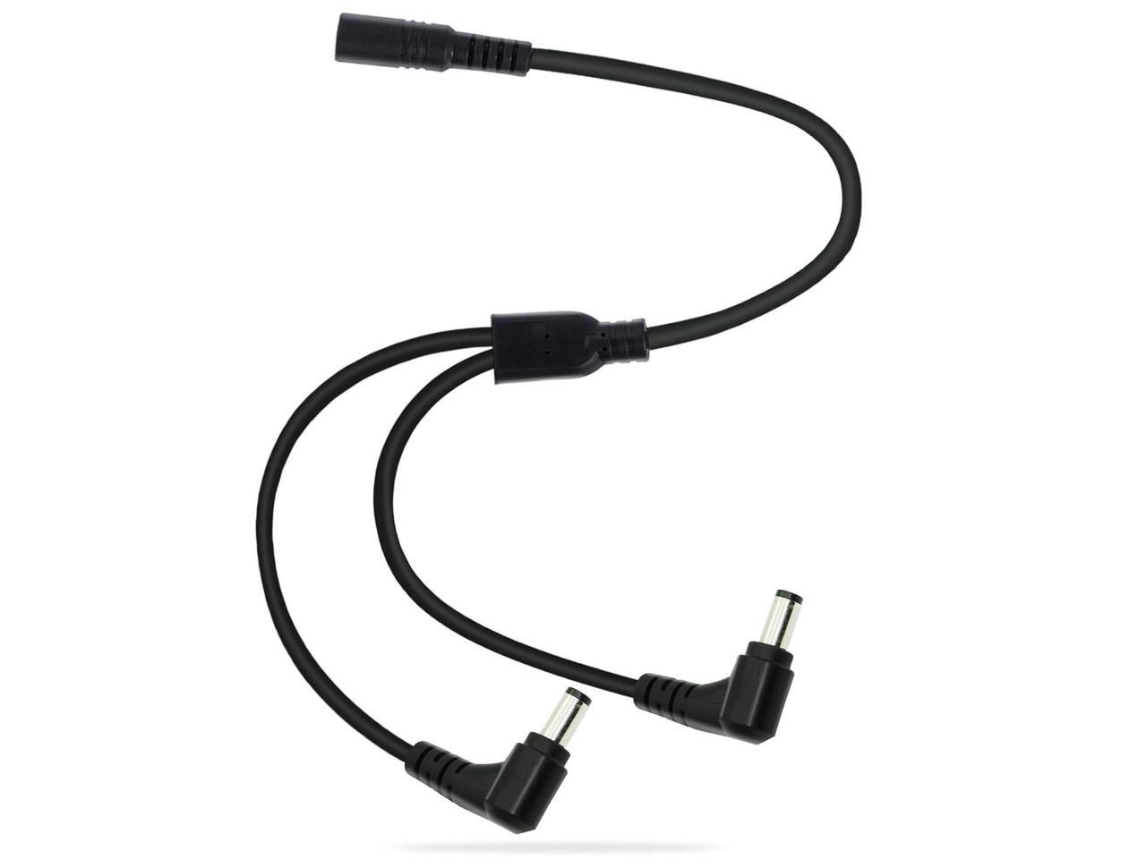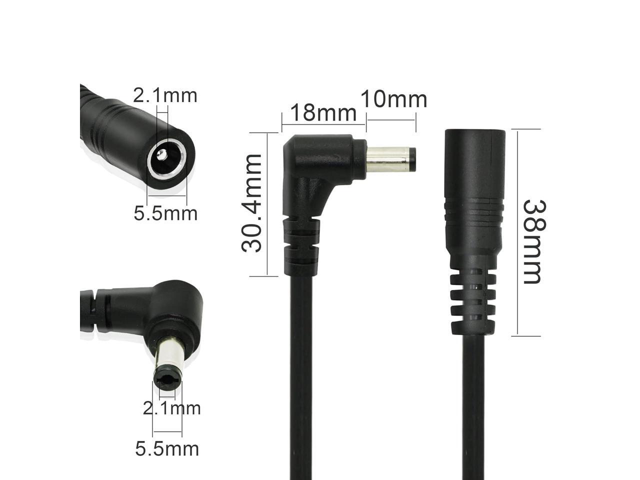 DC 5.5mm x 2.1mm 1 female to double 90 degree male Extension Cable total length is 0.7m. Main cable: 0.2m 18AWG 1-8A. Branch cable: 0.5m 18AWG 1-8A